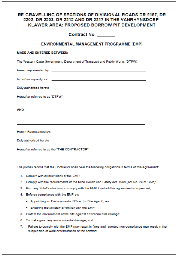 11 REGULATION 52 (2) (h) Undertaking to execute the Environmental Management Plan
